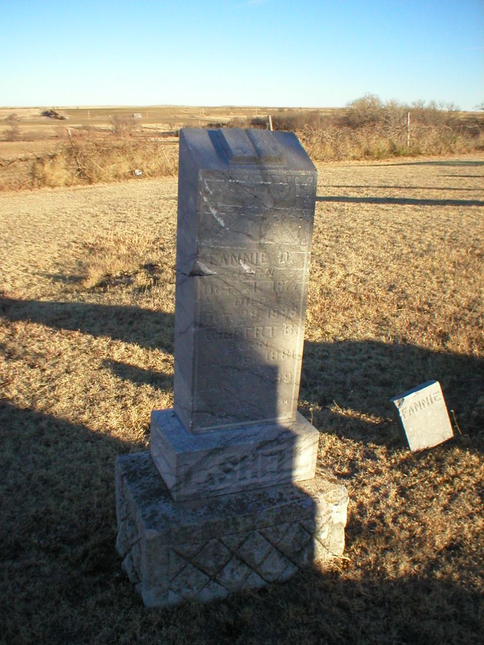 | Russ | Emma E. | 7/24/1887 | 3/9/1904 | Mortuary marker. Father, Horace born at Lucerne. Obit on file at Norton Co. Genealogical Society. Two other infants buried without stones. | | |