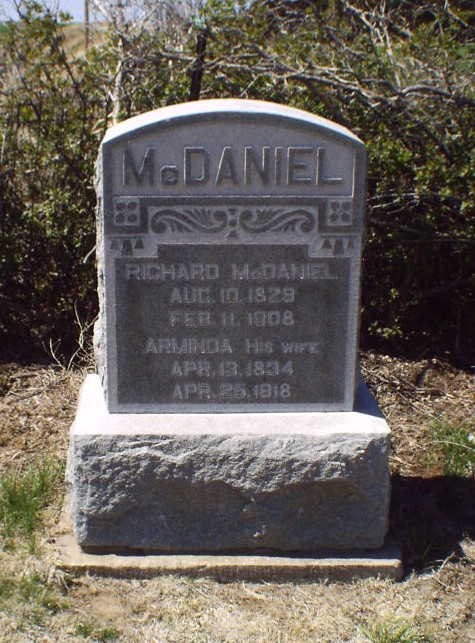 | McDaniel | Arminda | 4/13/1834 | 4/26/1918 | His wife | Same stone as Richard McDaniels. | |