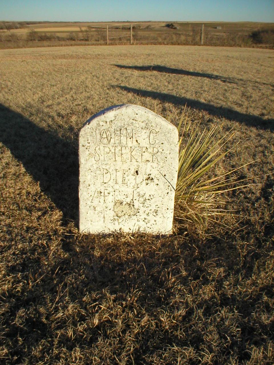 | Spieker | John C. | 4/18/1880 | Concrete, last digits of birth year illegible. Also, the given name appears to have been JAHN originally and the O was written over the A before the concrete set. | | ||