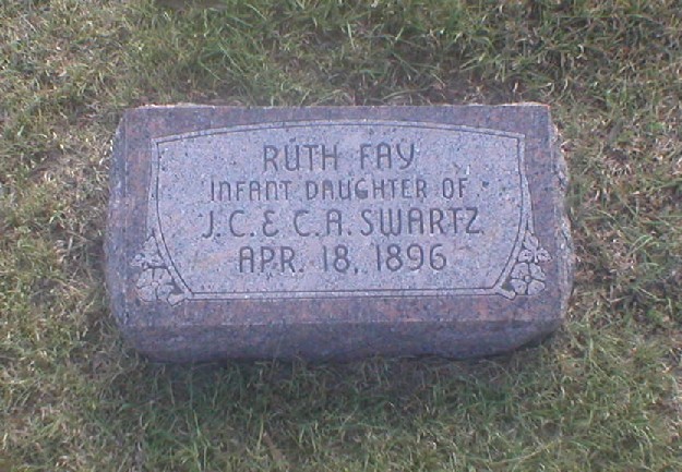 | Swartz | Ruth Fay | 4/18/1896 | Infant daughter of J.C. & C. A. Swartz. | | ||