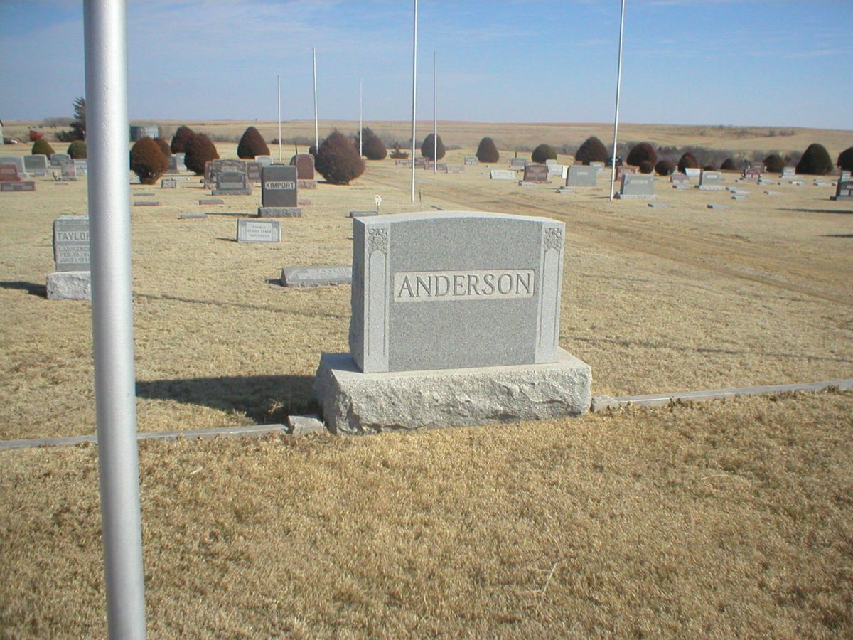 | Anderson | Annie E. | 2/2/1858 | 2/28/1929 | Mother | Large ANDERSON family stone; individual footstones with names & dates. Eastern Star emblem. Obit on file at Norton Co. Genealogical Society. | |