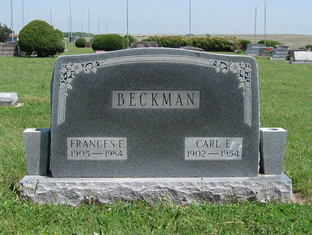 | Beckman | Frances E. | 1905 | 1984 | Same stone as Carl E. Beckman. Obit | | |