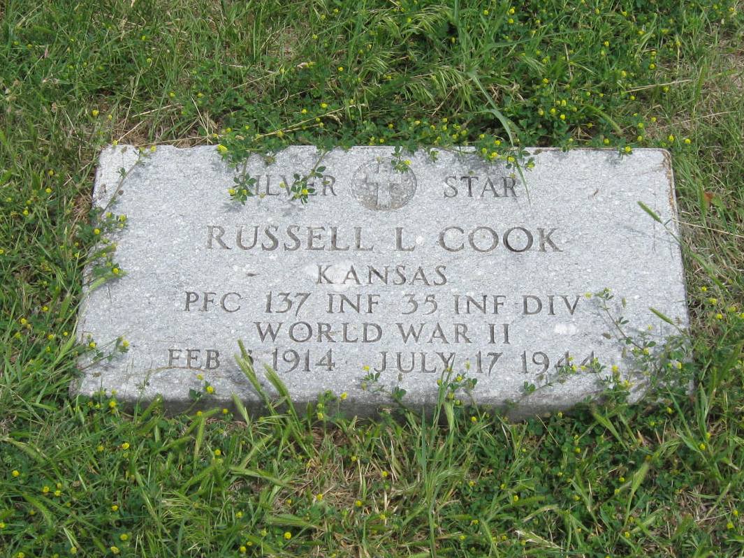 | Cook | Russell L. | 2/5/1914 | 7/17/1944 | Father KANSAS PFC 137 INF 35th Div. World War II Silver Star | | |