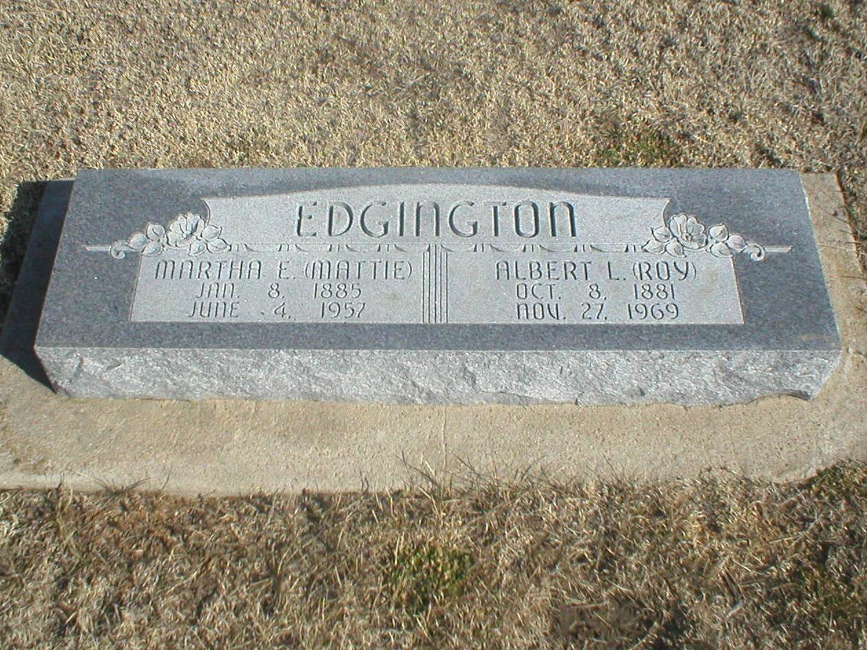 | Edgington | Ora | 1895 | 1971 | Mother | Same stone as Ollie L. Edgington and Verla I. Edgington. | |