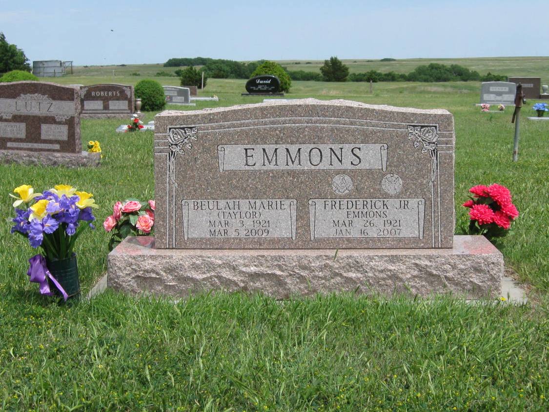 | Emmons | Frederick, Jr. | 3/26/1921 | 1/26/2007 | U.S. Army Air Corps. Mason. Same stone as (living) Emmons. | | |