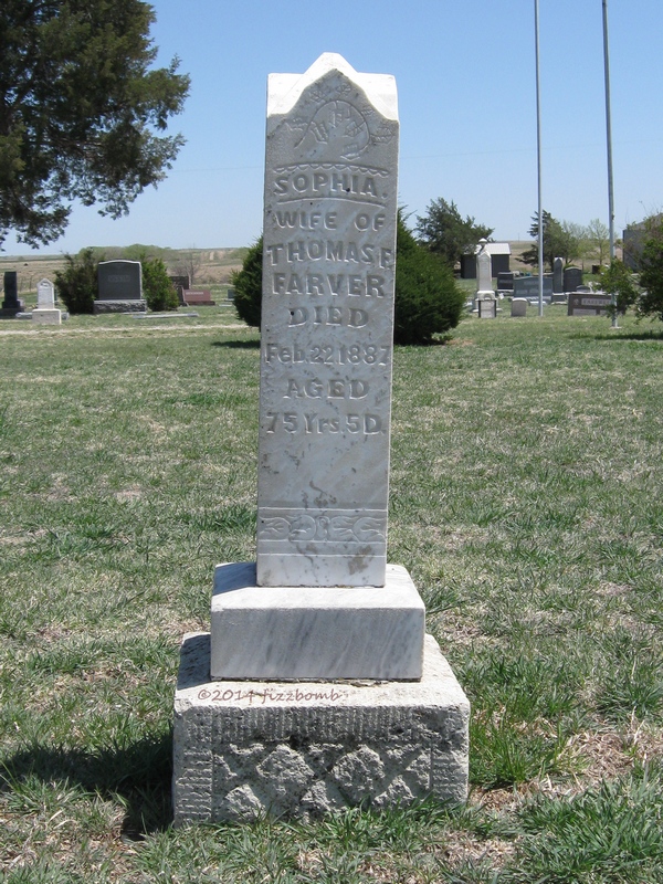 | Farver | Sophia | 2/22/1887 | Wife of Thomas F. Farver; Aged 75y 5d | | ||