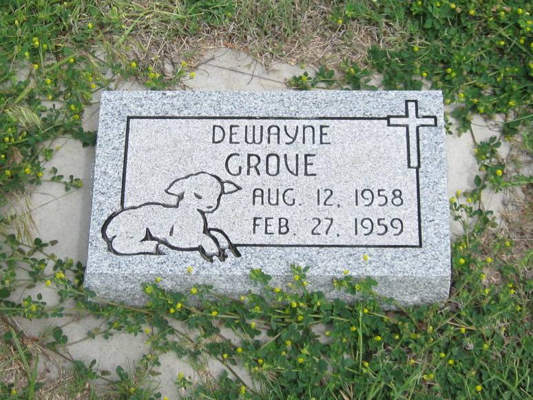 | Grove | Dewayne | 8/12/1958 | 2/27/1959 | Cemetery records indicate this plot also contains the burial of Wayne Grove. | | |