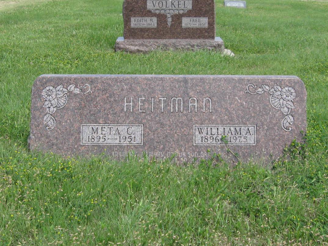 | Heitman | William A. "Bill" | 1896 | 1975 | In loving memory or our son, Orrin W. Hietman; who gave his life on Saipan; June 14, 1944 ; Buried overseas. | Same stone as Meta C. Heitman. | |
