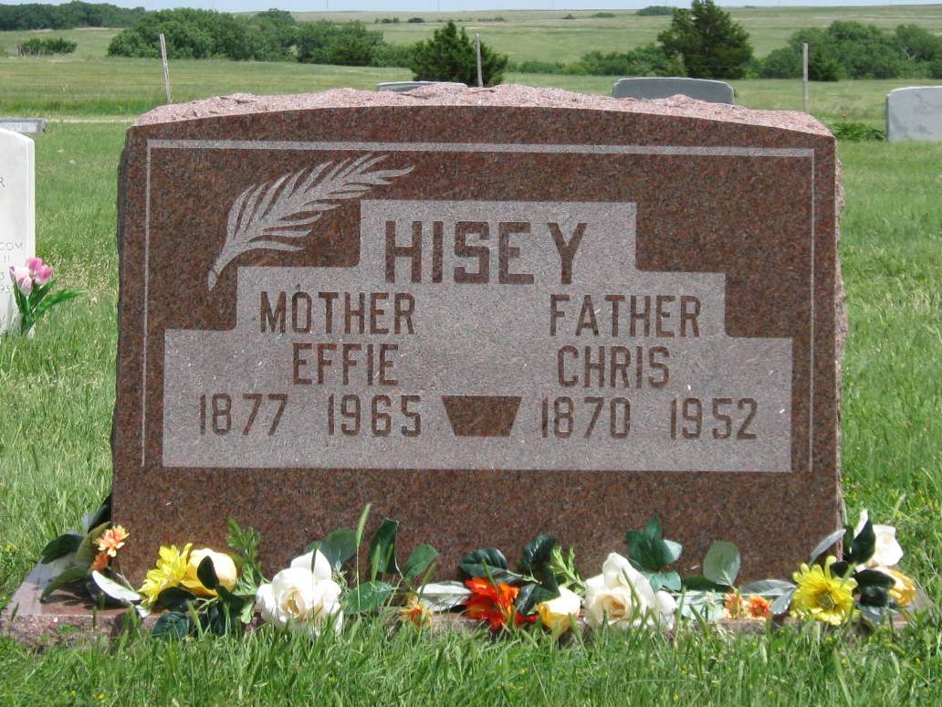 | Hisey | Effie | 1877 | 1965 | Mother | Same stone as Chris Hisey. Obit | |