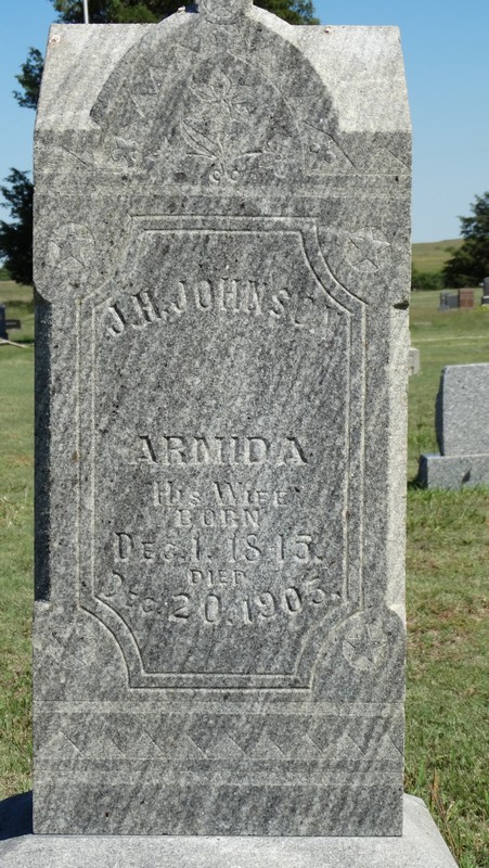 | Johnson | Armida | 12/1/1845 | 12/20/1905 | His wife | Presume husband was J. H. Johnson. | |