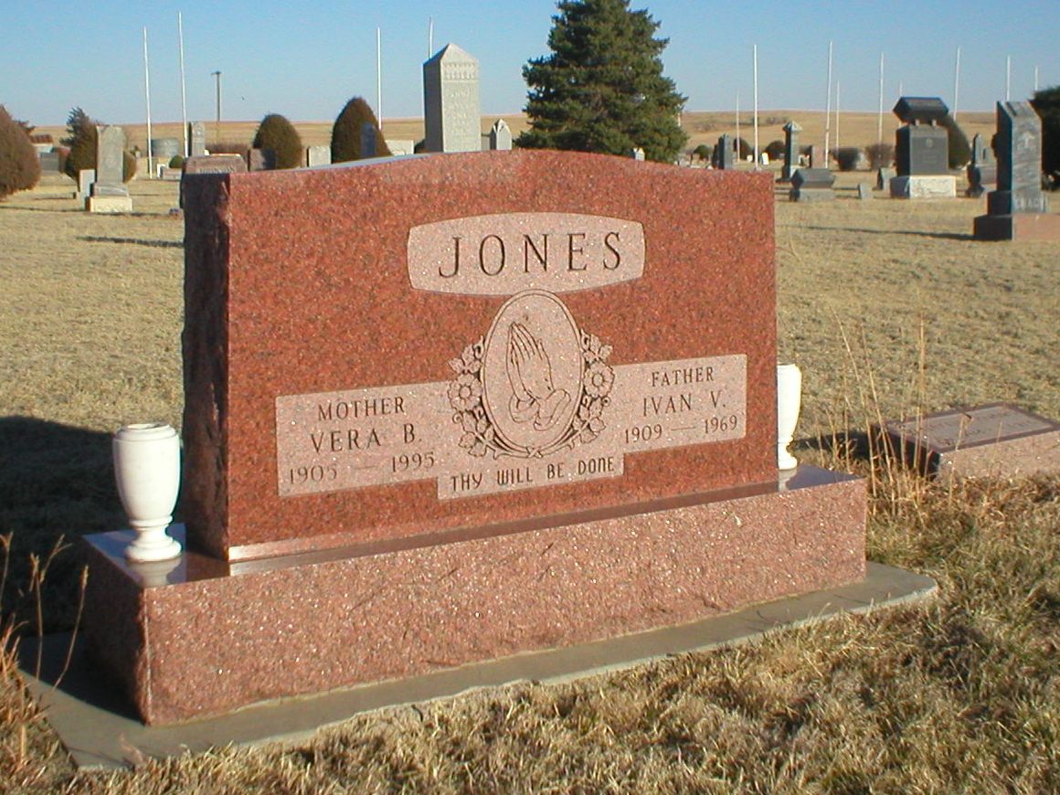 | Jones | Vera B. | 1905 | 1995 | Mother; Thy Will be Done | Same stone as Ivan V. Jones. Daughter of Samuel & Lucy (Bangle) Hodge. | |