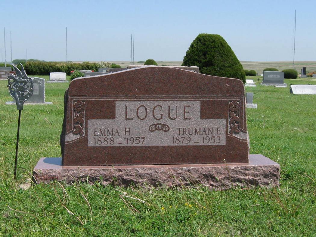 | Logue | Truman E. | 1879 | 1953 | Same stone as Emma H. Logue. Oddfellow emblem. Obit | | |