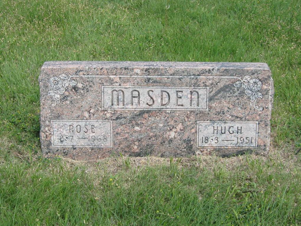 | Masden | Rose | 1897 | 1968 | Same stone as Hugh Masden. | | |