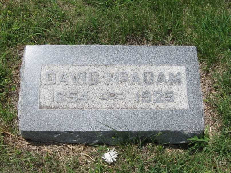 | McAdam | David | 1854 | 1929 | Same stone as Carrie McAdam; individual footstones. Odd Fellow emblem. | | |