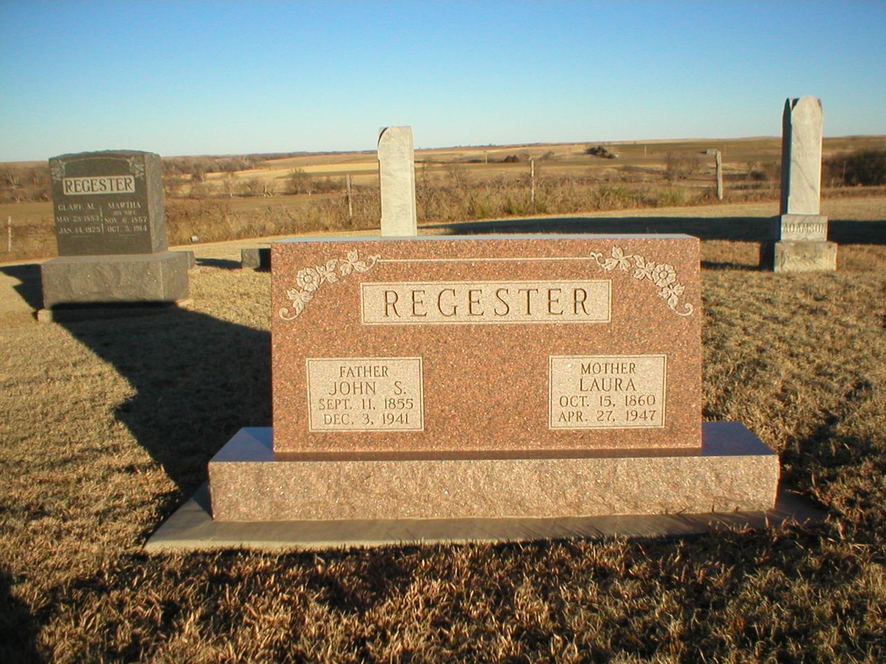 | Regester | Roy R. | Same stone as Rosa Nell Peterson and Charley R. Regester. | ||||