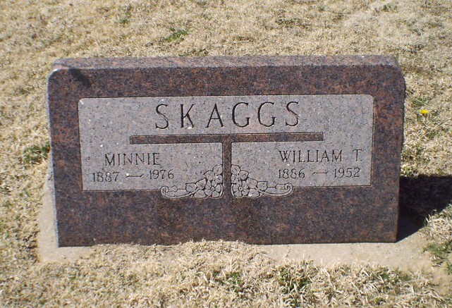 | Skaggs | William T. | 8/27/1886 | 11/24/1952 | Same stone as Minnie (Eleanor) Skaggs. Obit | | |