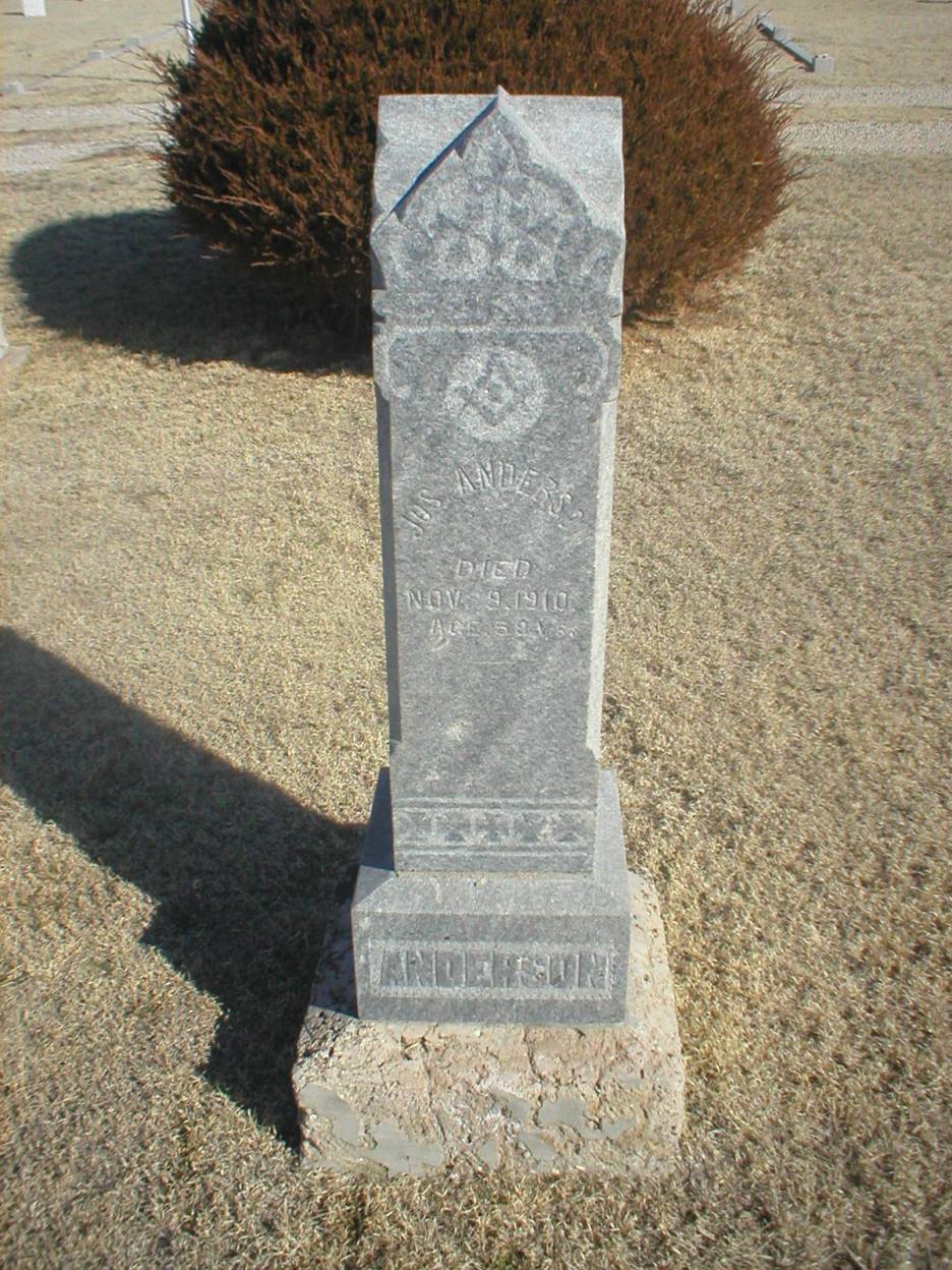 | Anderson | Jos. | 11/9/1910 | Aged 58 years | Mason emblem. | | |
