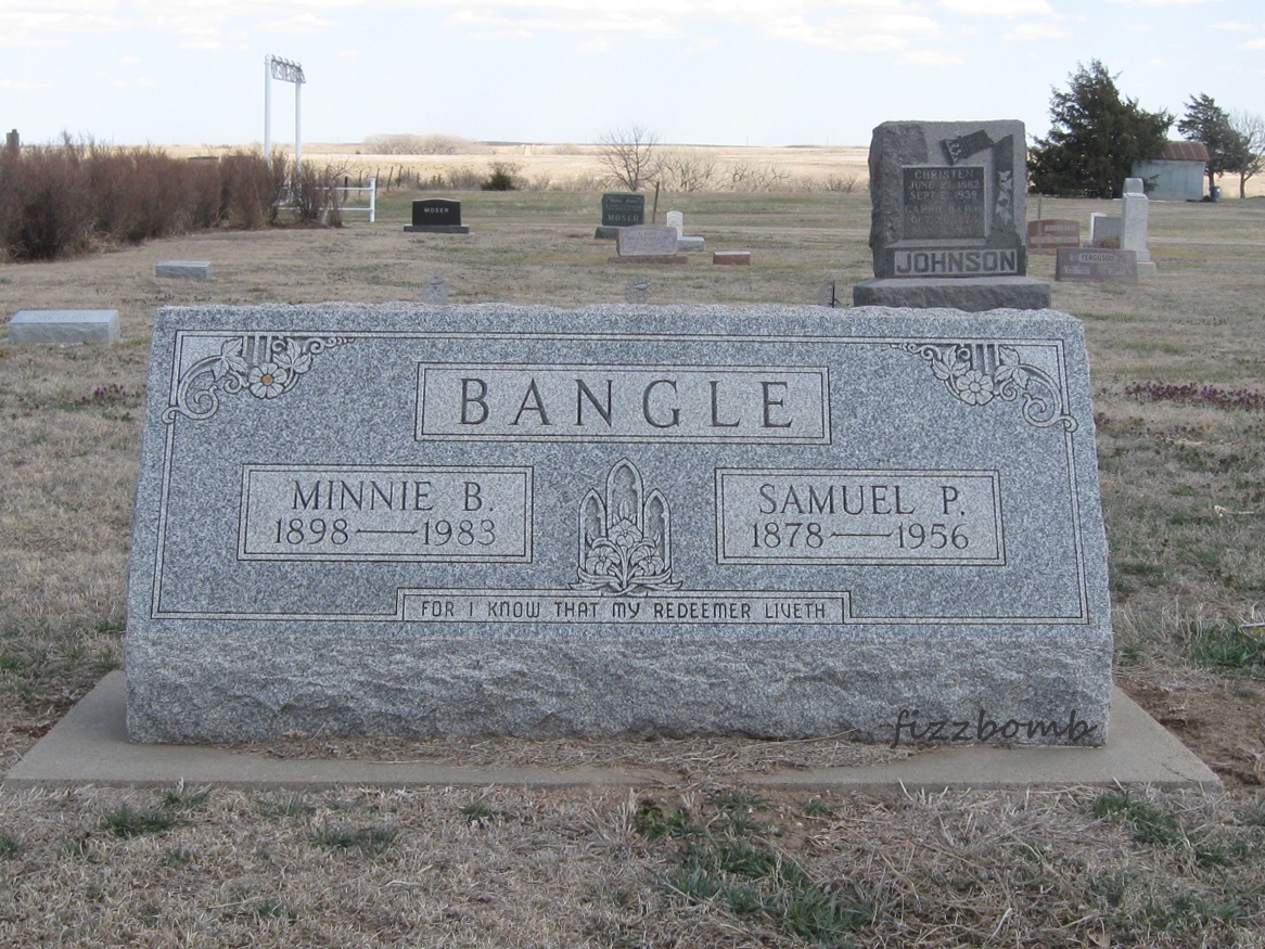 | Bangle | Samuel P. | 1878 | 1956 | For I know that my Redeemer Liveth | Same stone as Minnie B. (Turner) Bangle. Son of Phillip D. and Sarah J. (Shreck) Bangle. Obit | |