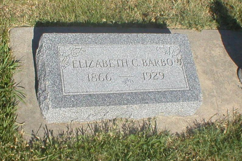 | Barbo | Elizabeth C. | 10/28/1865 | 2/20/1929 | Eastern Star emblem. Daughter of George A. and Caroline (Jones) Gatlin. Obit | | |