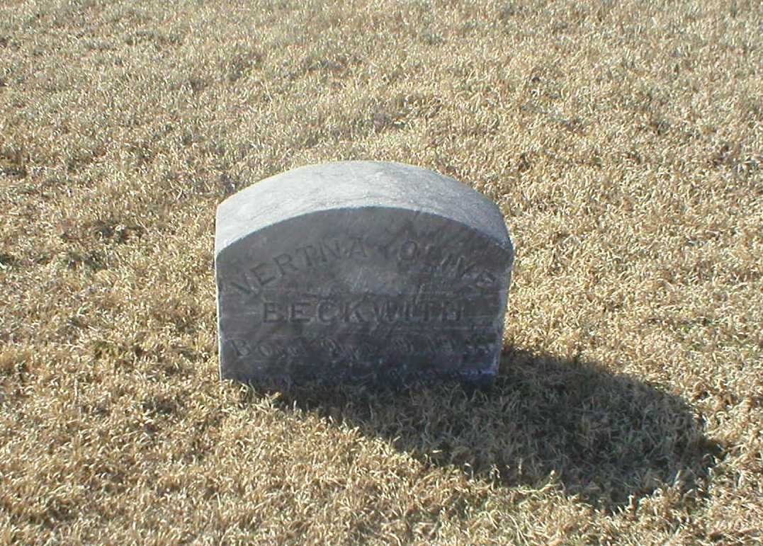| Beckwith | Vertna Olive | 4/9/1901 | 2/10/1902 | Very small baby stone. Obit | | |