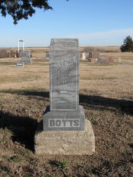 | Botts | Ellen E. | 6/3/1837 | 6/27/1893 | Mother | Stones are at the far east end of lot so they apper to be in the row immediately east. | |