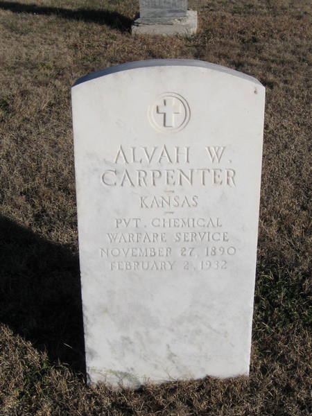 | Carpenter | Alvah W. | 11/27/1890 | 2/2/1932 | Kansas Pvt. Chemical Warfare Service WW I | Military marker. | |