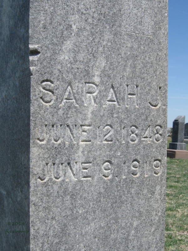 | Calkins | Sarah Jane | 8/2/1868 | 3/15/1923 | Wife of Carl B. Calkins; Aged 54y 7m 13d; Blessed are the pure in heart for they shall see God | Obit | |