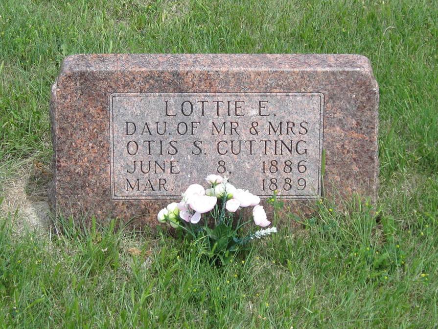 | Cutting | Lottie E. | 6/8/1886 | 3/10/1889 | Daughter of Mr. & Mrs. Otis Cutting. | | |