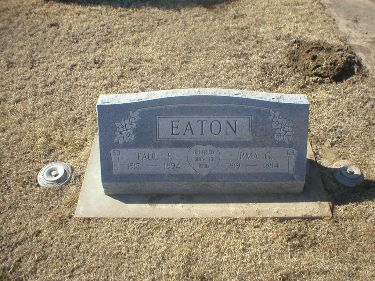 | Eaton | Velma | 5/30/1911 | 2/8/2007 | Married Dec. 30, 1936 | Same stone as Edwin J. Eaton. | |