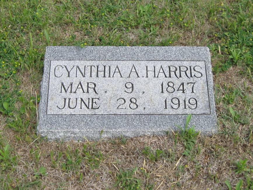 | Harris | Cynthia A. | 3/9/1847 | 6/28/1919 | Maiden name was Pierce. Wife of George M. Harris. | | |