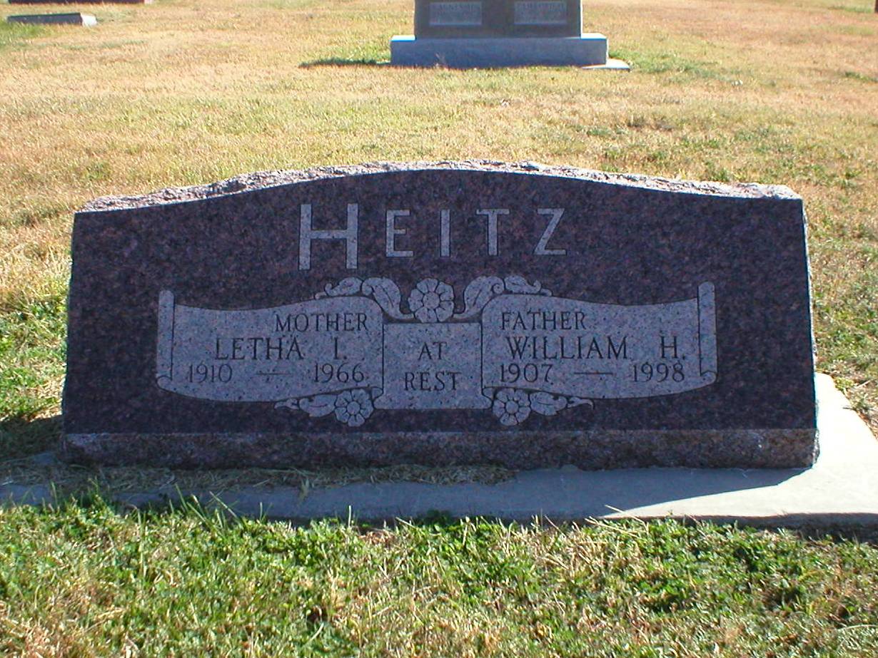 | Heitz | William H. | 1907 | 1998 | Father | Same stone as Letha I. Heitz. | |