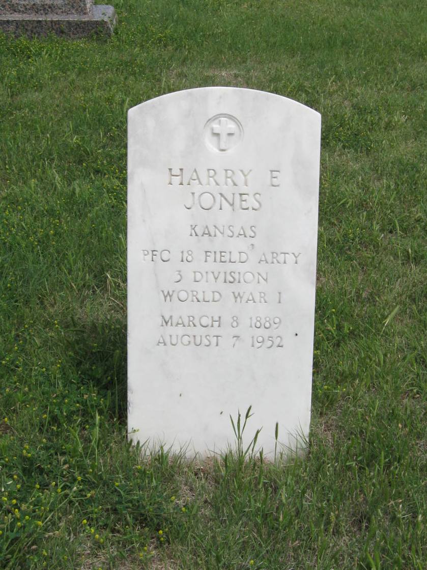 | Jones | Harry E. | 3/8/1889 | 8/7/1952 | KANSAS PFC 18 Field Arty 3rd Division World War I | | |