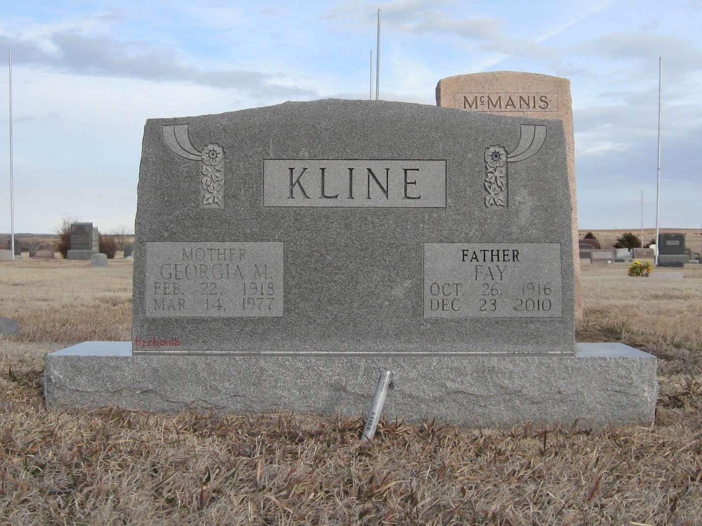 | Kline | Georgia M. | 2/22/1918 | 3/14/1977 | Mother | Lot purchased from F.M. Nelson estate by Faye Kline 1963. Same stone as Bedford "Fay" Kline. | |