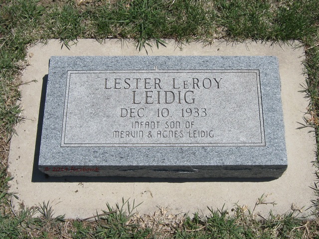 | Leidig | Lester LeRoy | 12/10/1933 | 12/10/1933 | Infant son of Mervin and Agnes Leidig | | |